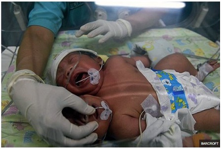 According to footage of the baby released, both mouths appear to be crying normally, a sign everything's fine after birth, Dailystar reports.