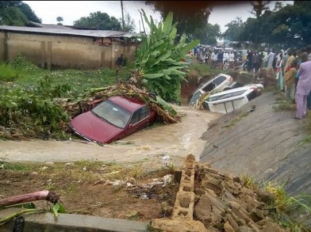 The heavy rain and strong winds reportedly destroyed and swept some vehicles into a small river, after Kantoma Brigde, in Suleja, Niger State.
