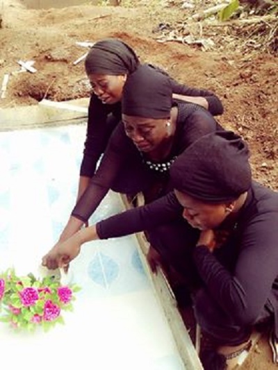 They wept uncontrollably at his grave after he was buried at their hometown in Ijebu Igbo, Ogun state.