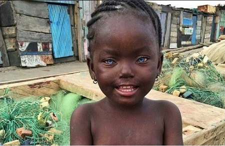 The little girl pictured above is reportedly a Ghanaian girl and she has caused quite a scene online with her blue eyes.