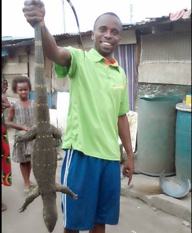 According to him, he single-handedly killed a big monitor lizard which invaded his home with his bare hands. He decided to show his achievement by posing with the dead reptile after the kill.